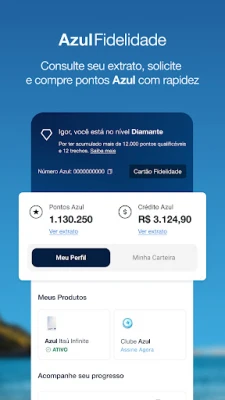 A experiência com a Azul vai além do voo. Membros do programa Azul Fidelidade desfrutam de uma área dedicada para acompanhar o saldo de pontos e explorar um leque de benefícios exclusivos, transformando cada viagem em uma oportunidade de recompensa. Mantenha-se à frente com ofertas e promoções personalizadas, recebendo novidades diretamente no seu dispositivo. Sua opinião é valiosa para a Azul Linhas Aéreas; compartilhe suas ideias e ajude-nos a refinar este aplicativo, tornando-o ainda mais adaptado às suas necessidades de Cliente Azul.
