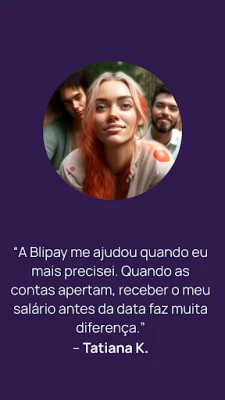 Blipay revoluciona seu acesso financeiro. Antecipe seu salário de forma inteligente e obtenha fundos, até R$1.000, em instantes para cobrir suas necessidades. Blipay oferece a flexibilidade e tranquilidade que você precisa para gerenciar suas finanças com facilidade e rapidez.