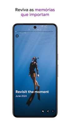 Reviva os seus momentos favoritos diretamente no Google Fotos e partilhe-os sem complicações com quem quiser, mesmo que os seus contactos não utilizem a aplicação. Nunca mais se preocupe com o espaço no telemóvel: com as suas memórias em segurança na nuvem da Google, pode libertar o armazenamento do seu dispositivo com um simples toque. Se desejar, transforme as suas fotos digitais em impressões, álbuns físicos ou quadros em tela (serviços de impressão disponíveis em regiões selecionadas). E para ir além, o Google Lens permite-lhe explorar o mundo nas suas fotos, identificando texto e objetos para uma interação mais profunda com as suas imagens.
